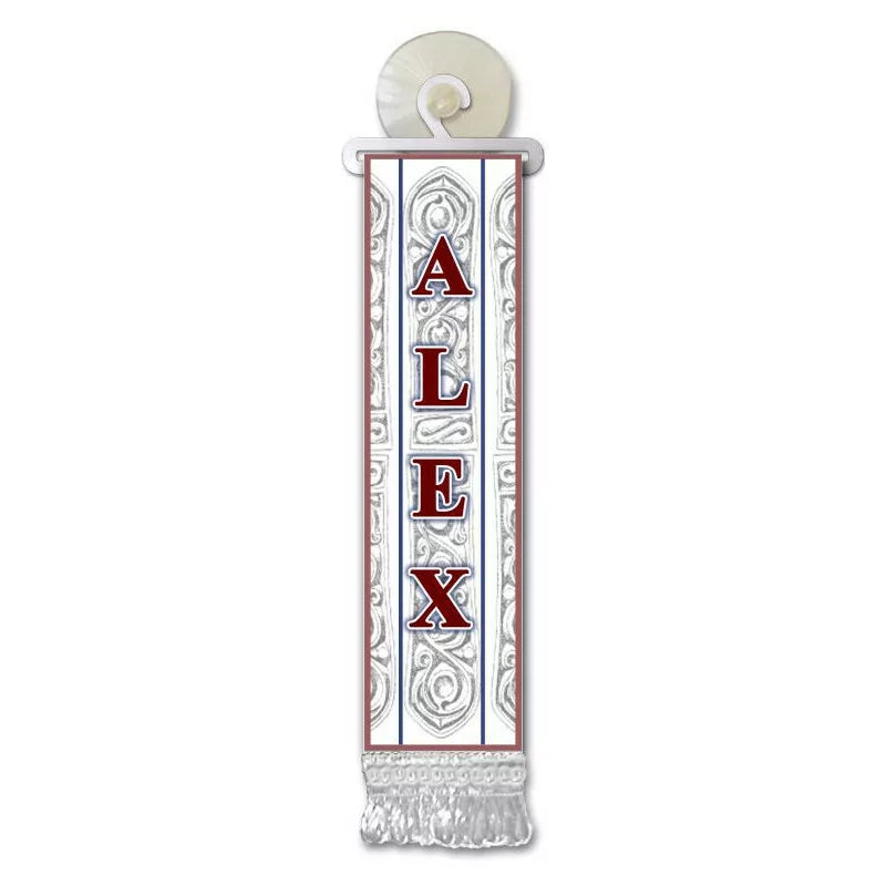Tato elegantní mini vlaječka s vyšitým jménem je jedinečným doplňkem, který dodá osobitost vašemu autu, kanceláři nebo domovu. Díky praktickému uchycení pomocí přísavky ji snadno připevníte na jakýkoli hladký skleněný povrch – například na čelní sklo, dveře, vitrínu nebo zrcadlo.