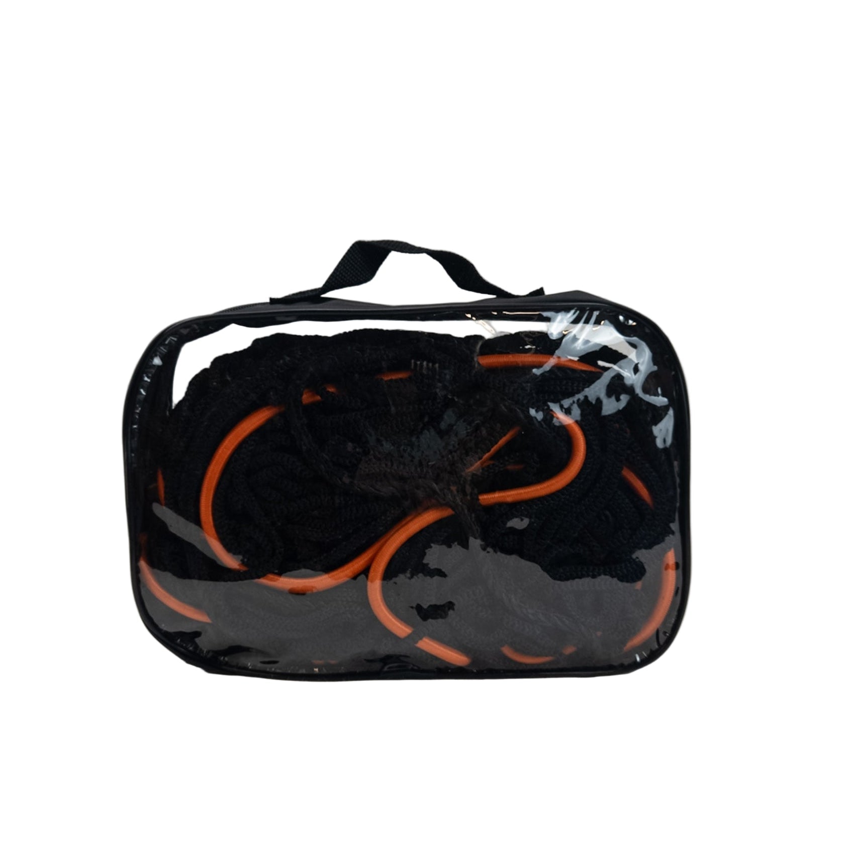 • Bezpečná fixace – černá síť s oranžovými úchyty pevně drží náklad na svém místě a minimalizuje pohyb během přepravy.
