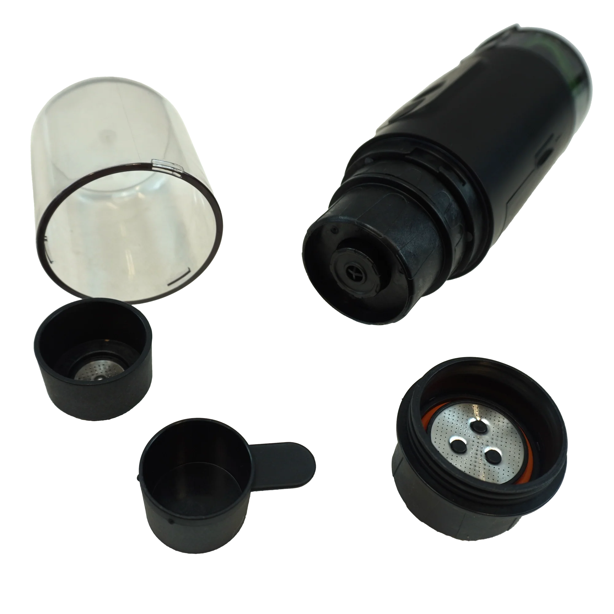 Compatible with Nespresso capsules and ground coffee. The included scoop makes it easy to measure the perfect 8g for your brew.