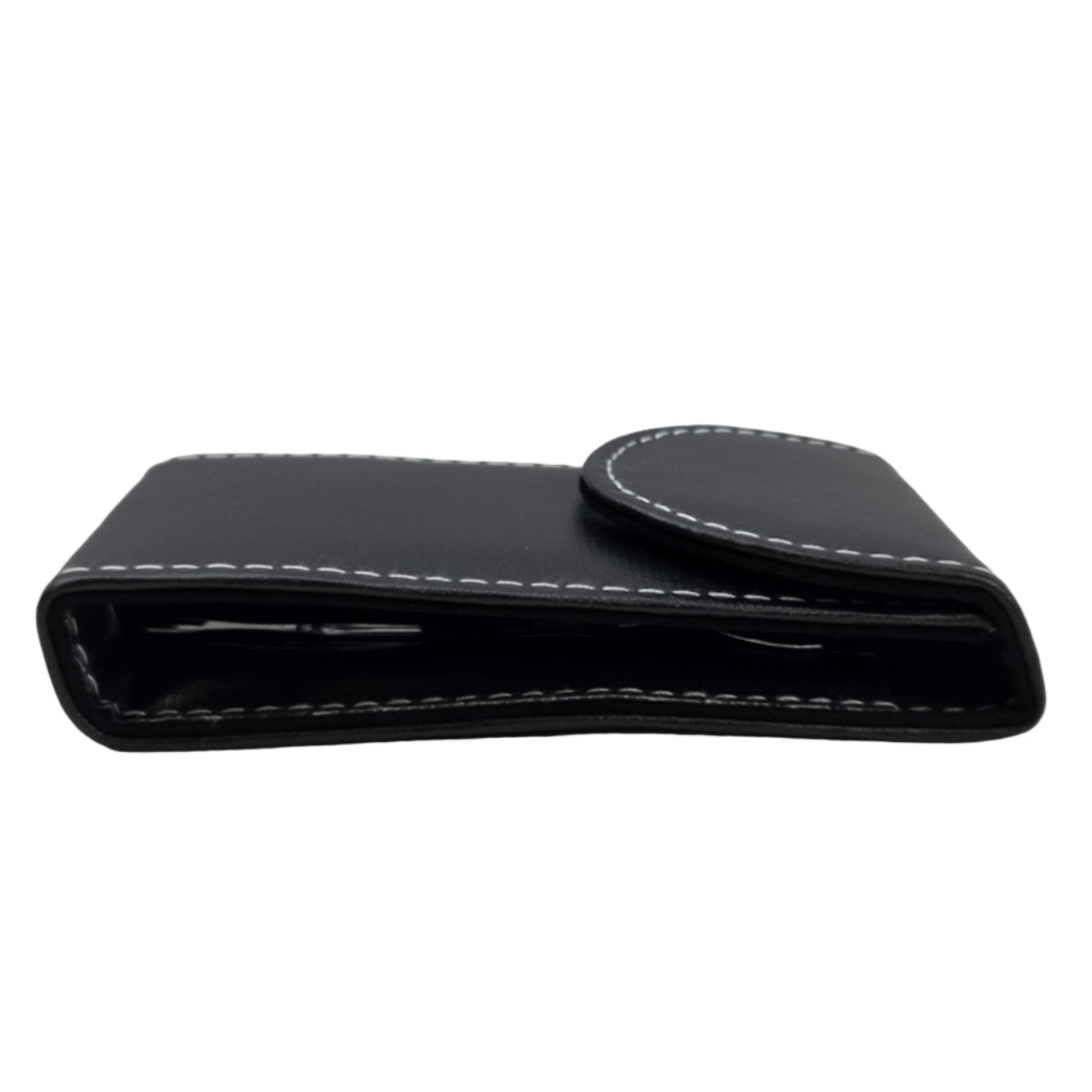Vsi pripomočki so varno shranjeni v kompaktni črni torbici z belimi šivi, ki izstopa po svoji prefinjenosti in brezčasnem videzu. Torbica se zapira s pritiskačem, zato ostane vse na svojem mestu tudi v torbici ali predalu. Notranje elastične zanke poskrbijo, da ima vsak pripomoček svoje mesto in ga hitro najdete, ko ga potrebujete.